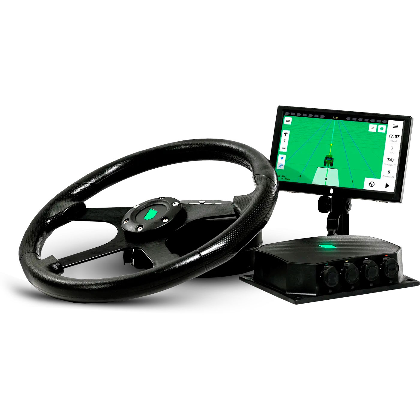 Автоматический подруливатель Лейос - для тракторов и комбайнов. Повышает точность вождения, снижает утомляемость оператора, оптимизирует работу на полях.